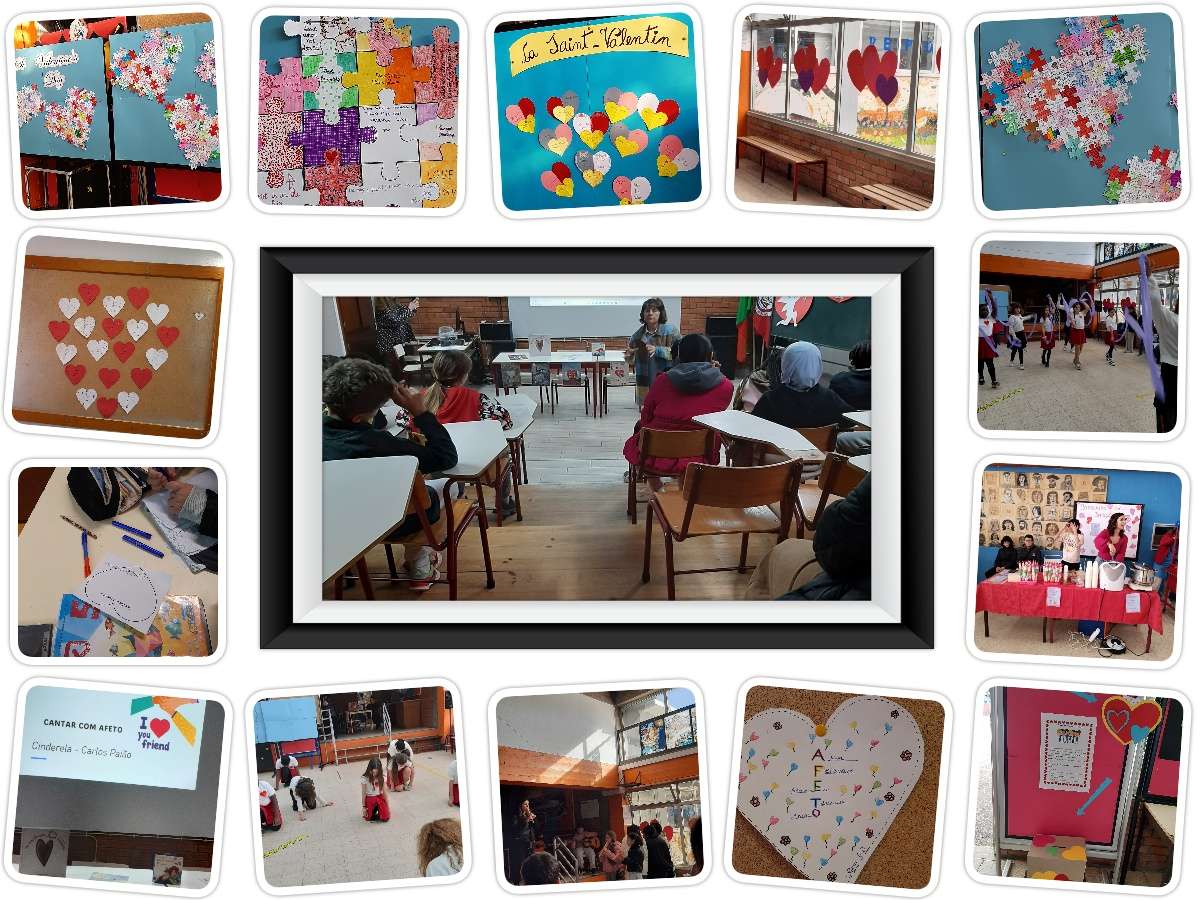 A equipa do PES, em articulação com Departamento de Línguas (exposição de trabalhos no Polivalente), Departamento de Matemática (Desafio matemático, afixado no Polivalente), Biblioteca Escolar (atividade "Cantar com Afeto"), Clube da Dança e Música (dança no Polivalente), "Banquinha com coração" dinamizada pelos alunos e professores da Educação Especial, organizou de 23 a 27 de fevereiro, a Semana dos Afetos. Pretendeu-se, sobretudo, que fosse uma semana em que toda a comunidade educativa refletisse sobre a importância do afeto e o impacto que este poderá ter na vida de quem o pratica e de quem o recebe, porque o afeto tem o poder de TRANSFORMAR. Agradecemos a todos que dinamizaram e participaram nas atividades!
